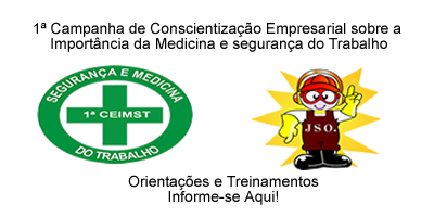 A idéia da Campanha CEIMST surgiu a partir de estudos realizados pelos profissionais da JSO onde dúvidas, problemas e sugestões foram apresentadas pelos nossos clientes. Elaboramos algumas ações estratégicas, que deverão desenvolver-se durante todo o ano, com o objetivo de alcançarmos nosso objetivo final, que é a conscientização dos empresários sobre a real importância da saúde e segurança do trabalhador. Todo o projeto será baseado na realização de orientações, treinamentos, campanhas e programas específicos, desenvolvidos para facilitação do dia-a-dia da produtividade da empresa.